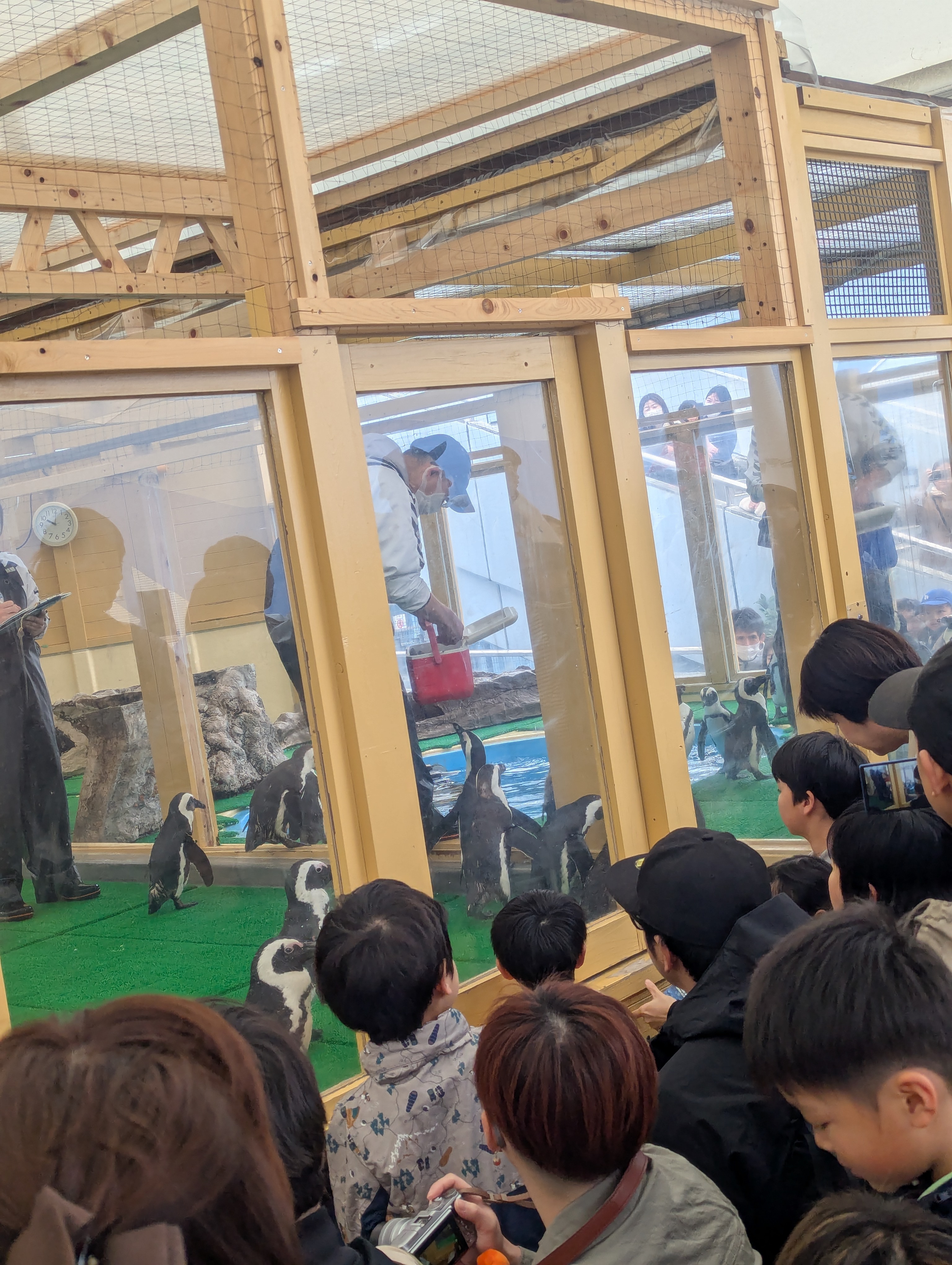 ペンギンは昔から好きで、どの水族館に行ったときもペンギン水槽に張り付いてることが多いのですが、今回は餌やりの見学をすることができました。