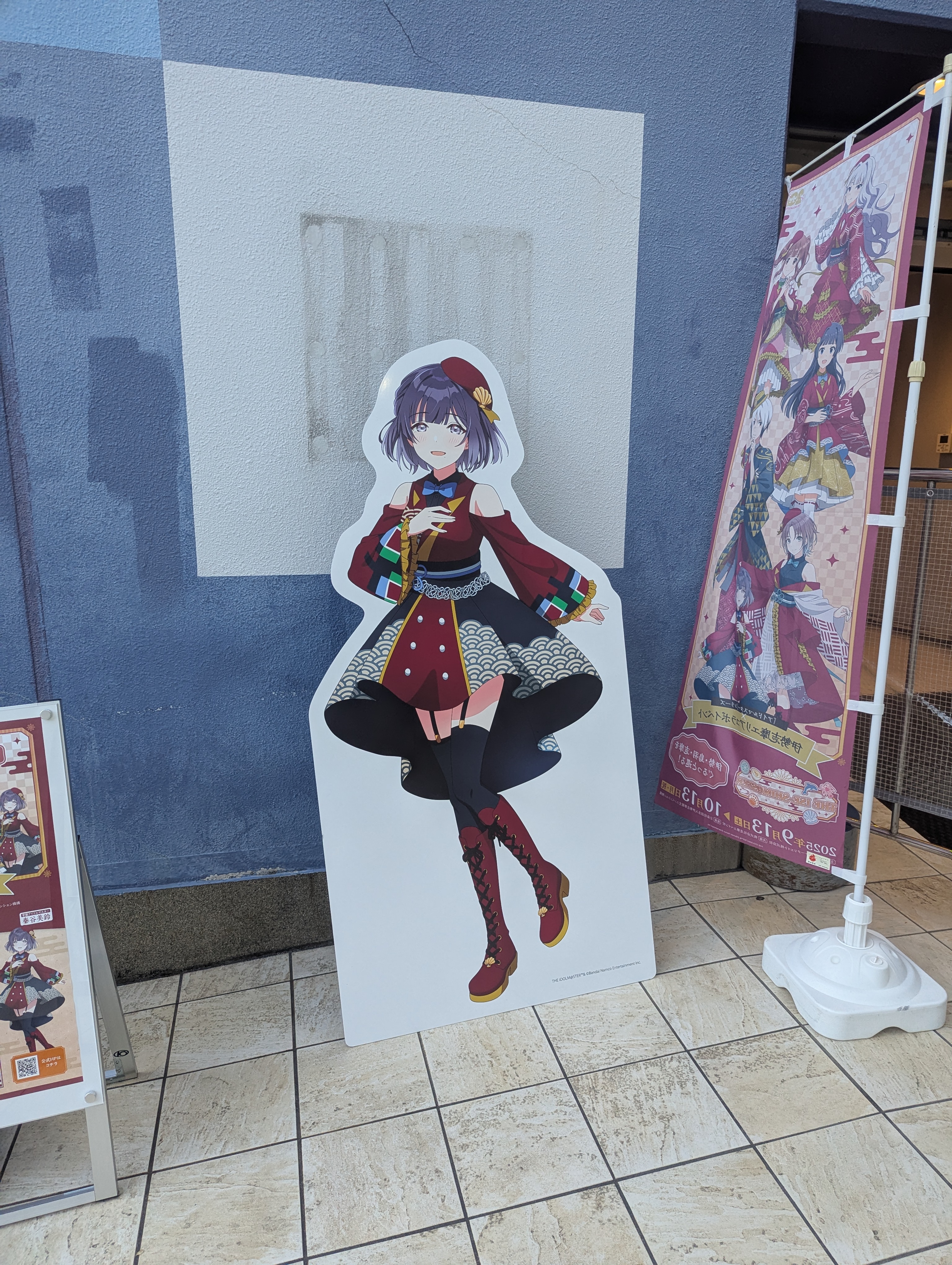 大きな建物一つがコラボ用になっていてクソデカタペストリーとパネルが展示されていました。行ったときはまだでらますシャイニーカラーズが開催されていたのでそれの案内もありました。
